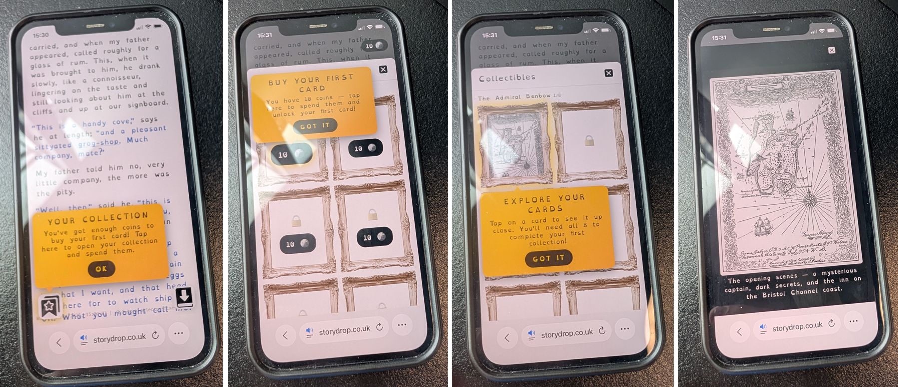 I tried some ideas but for now have settled on classic rewards and collections. I did consider generating this content with AI - but again this isn’t in the spirit of using AI in this project. Instead - I wanted to use AI to analyse and enhance what is already there. So, for now players unlock content - the content that you normally get for free in the original book - the existing illustrations.