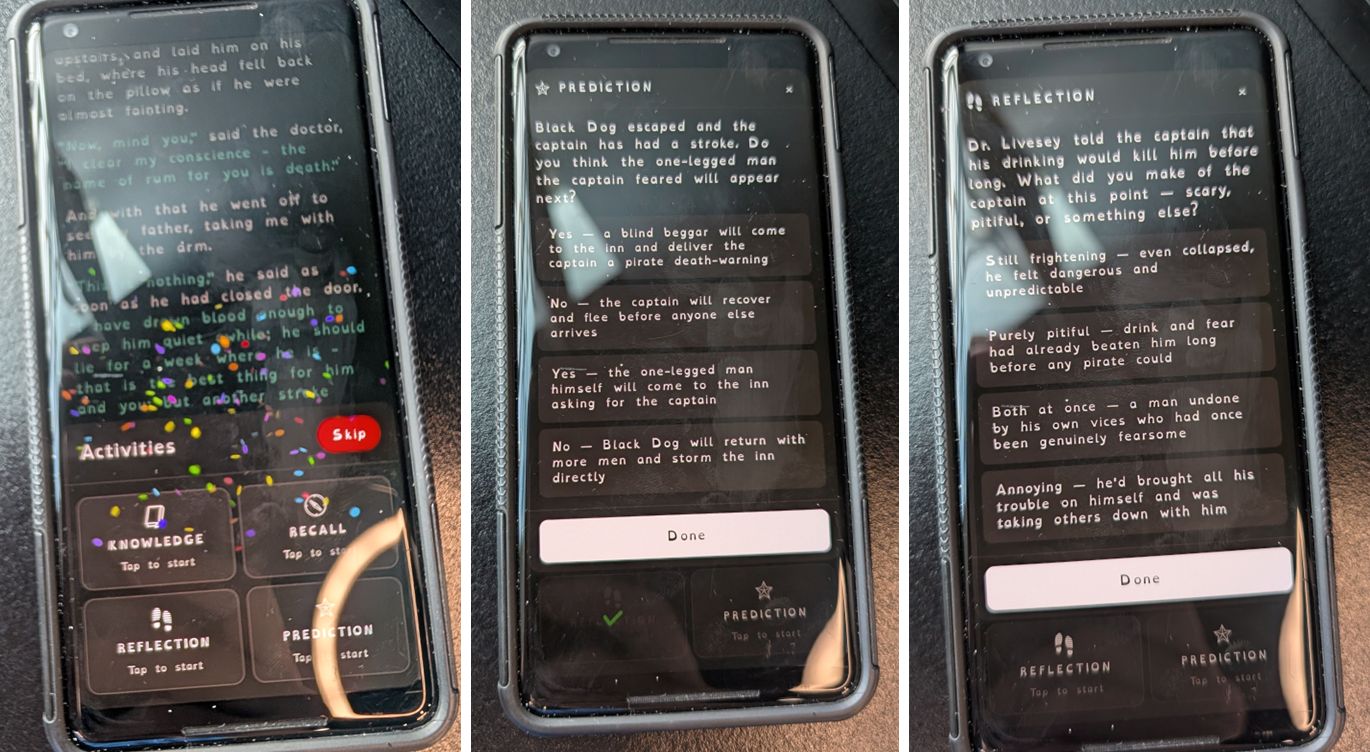 There’s a small amount of collection during the chapter and then an opportunity to complete activities at the end of a chapter. These are still quite light touch - I’d like to explore this more - and perhaps ramp up the game-ness of it to see how it would work.